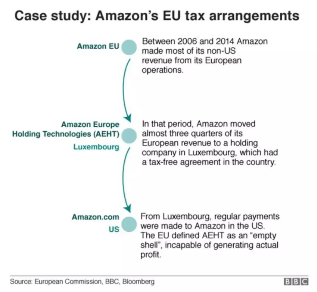 也就是从那时起,亚马逊在美国国内的营收都会走卢森堡这个公司的账,而且欧盟也将AEHT定义为一家“空壳公司”,并无法创造实际的利润。这样一来,亚马逊就顺利地占了大便宜。